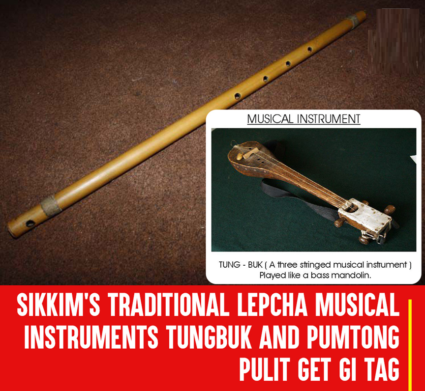 - Geographical Indication (GI) were granted to two traditional Lepcha musical instruments, Tungbuk and Pumtong Pulit of Sikkim.