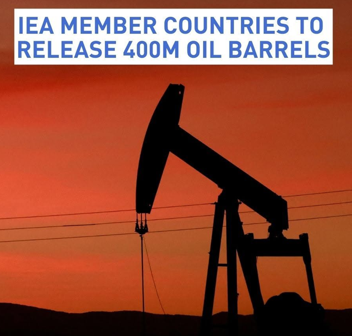 - The release is the largest in IEA history from member countries' strategic reserves.