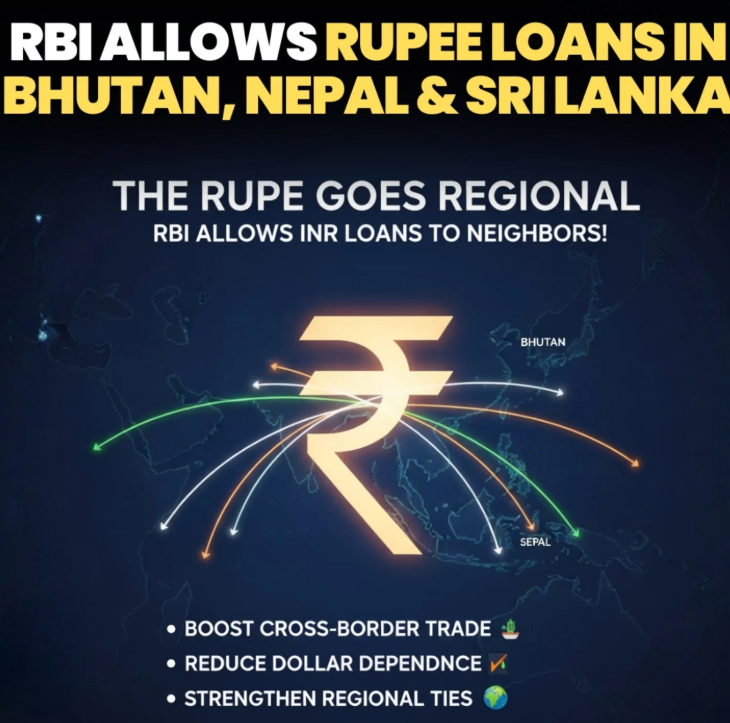 - The Reserve Bank of India (RBI) allowed Indian banks to lend in rupees to non-residents from Bhutan, Nepal, and Sri Lanka for cross-border trade.