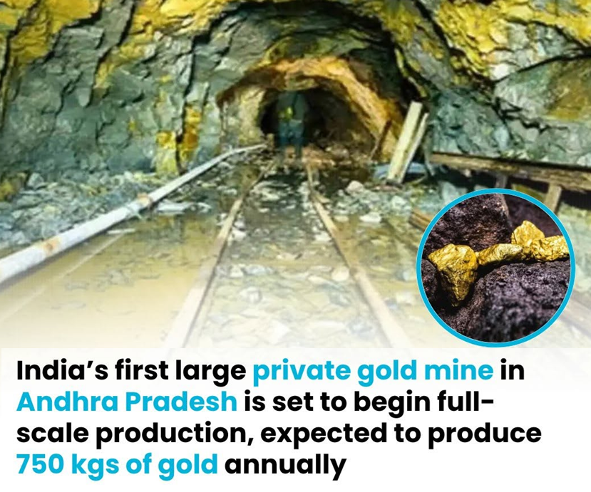 - India’s first large-scale private gold mining project is set to start operations in Andhra Pradesh in May 2026.