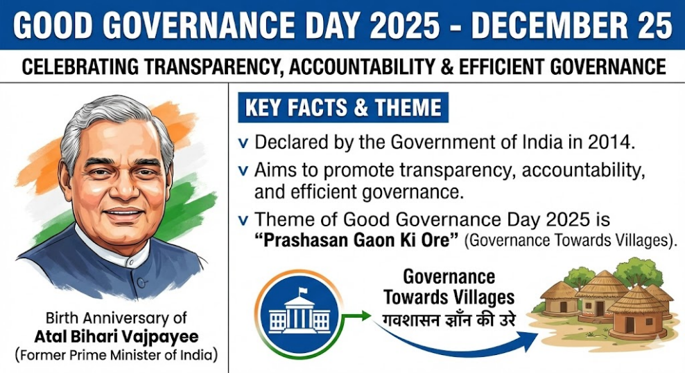 - It marks the birth anniversary of Atal Bihari Vajpayee (former PM of India).