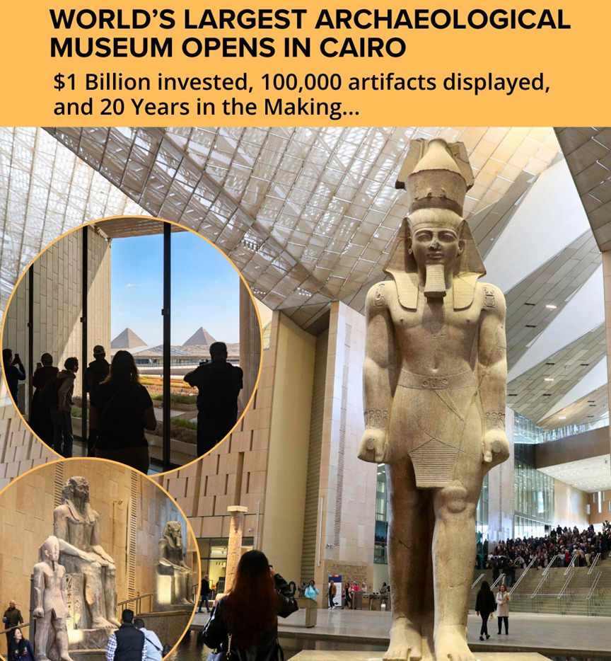The Grand Egyptian Museum has opened in Egypt, showcasing around 100,000 artefacts spanning 7,000 years of history