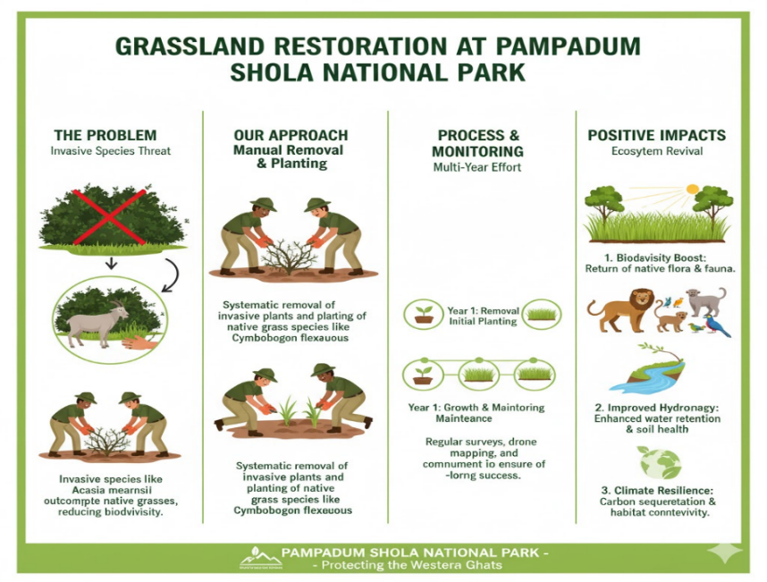 - The project is being studied as a model for tropical montane ecosystem restoration in other regions of the Western Ghats and beyond.