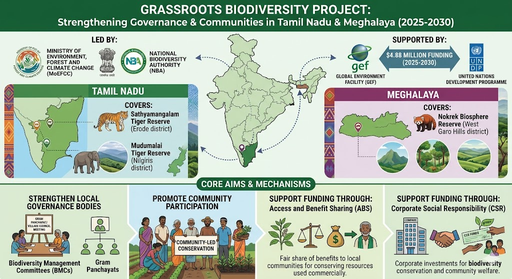 The Government of India launched a new biodiversity conservation project in Tamil Nadu and Meghalaya.