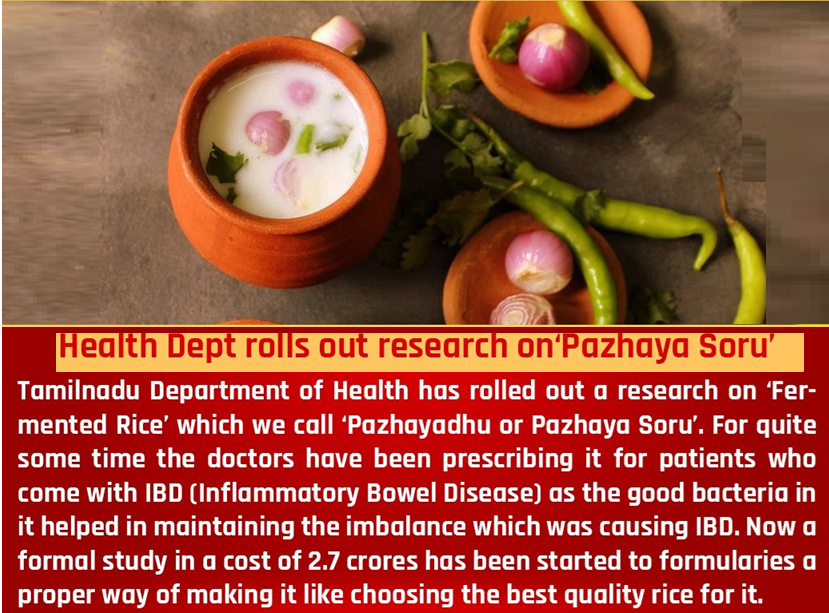 - The Tamil Nadu government is increasing public awareness about the health benefits of fermented rice after a five-year research study.