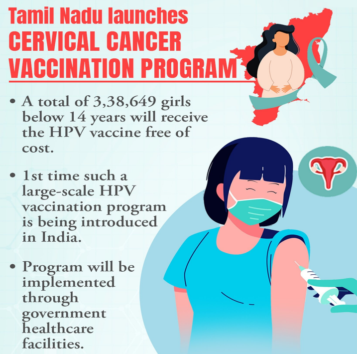 - The Government of Tamil Nadu reported 81% coverage in the Human Papillomavirus (HPV) vaccination programme in four pilot districts within six weeks.
