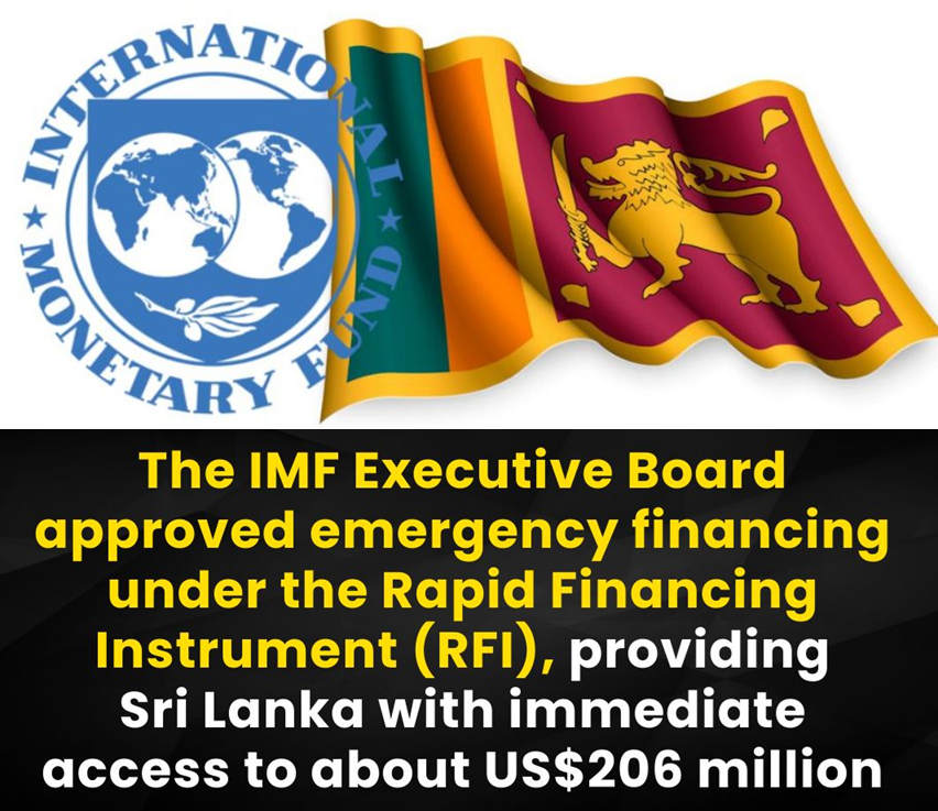 The IMF approved USD 206 million for Sri Lanka under the Rapid Financing Instrument (RFI).