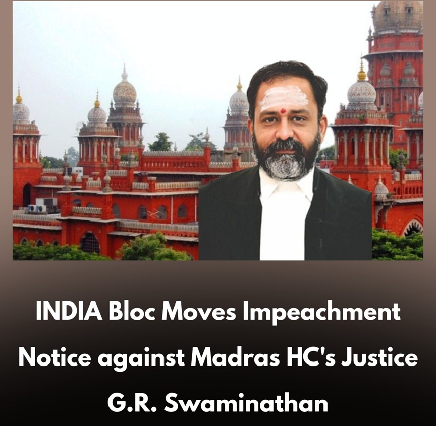 INDIA bloc MPs submit letter to LS Speaker to move impeachment motion against Justice Swaminathan.