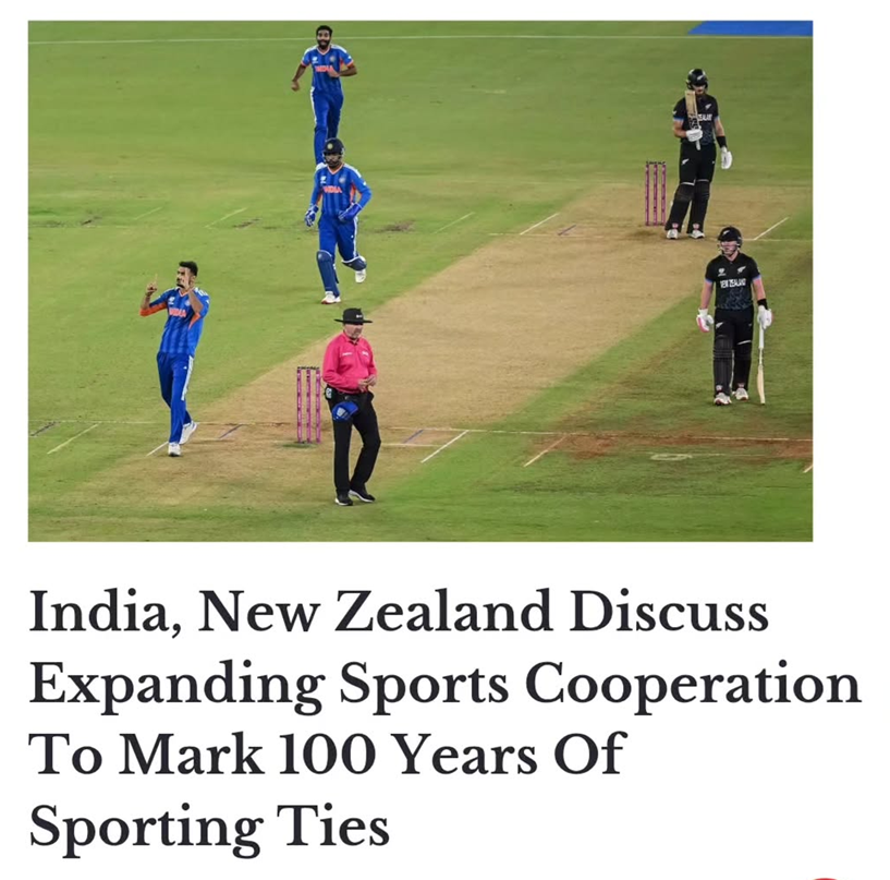 India and New Zealand plan to expand sports cooperation as 2026 marks 100 years of sporting relations between the two countries.