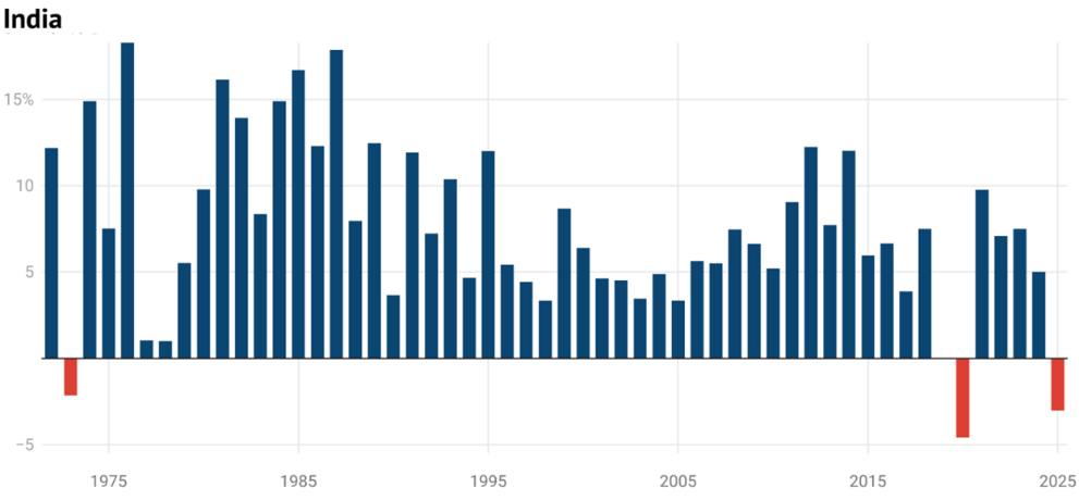 - This drop is only the second full-year annual decline in at least half a century, the first being in 2020 during the COVID-19 pandemic.