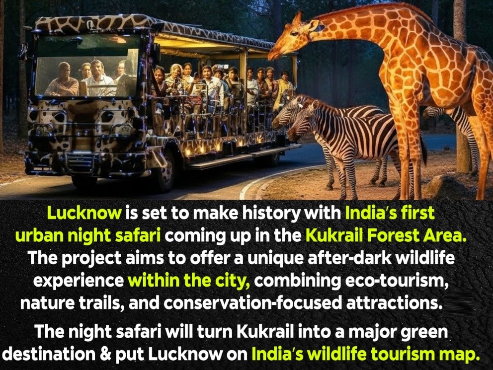 • Lucknow is set to get India’s first urban night safari at the Kukrail Forest Area on the northern outskirts of the city.