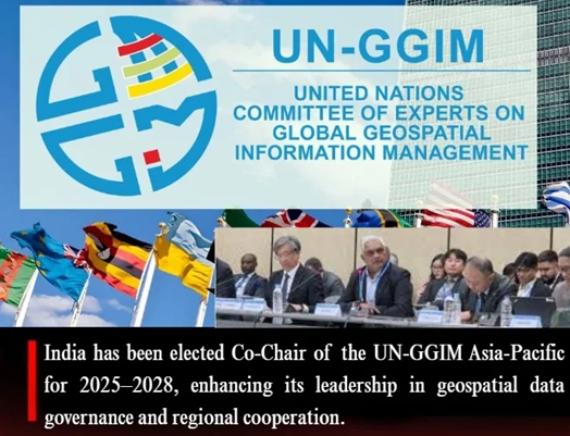 • India has been elected as Co-Chair of the Regional Committee of the United Nations Global Geospatial Information Management for Asia and the Pacific (UN-GGIM-AP) for the 2025-2028 term.