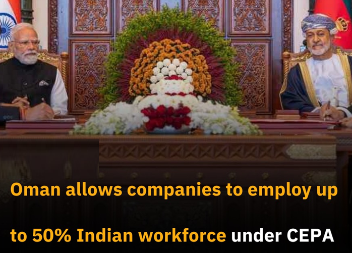 - The CEPA includes a parity clause, under which any labour-related concession granted by Oman to SAARC countries will automatically extend to India.