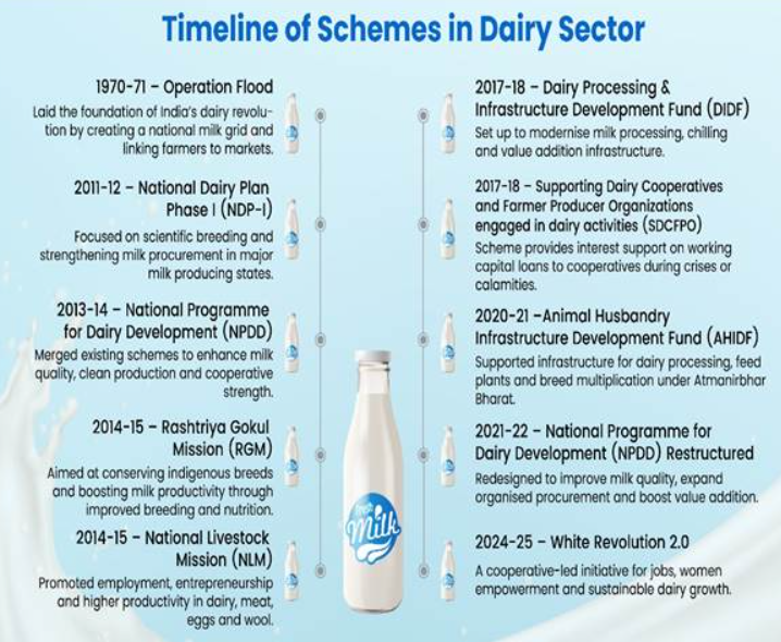 - White Revolution 2.0 targets 75,000 new cooperatives and upgrading 46,422 existing ones by 2028–29.