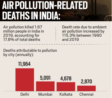 - In 2023, about 2 million deaths in India were linked to air pollution.