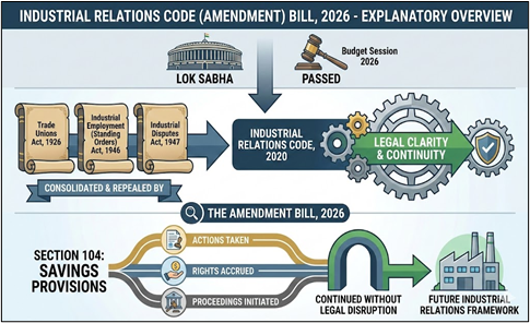 The Lok Sabha has passed the Industrial Relations Code (Amendment) Bill, 2026, during the Budget session of Parliament.