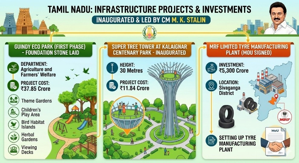 He also inaugurated a 30 metre high Super Tree Tower at Kalaignar Centenary Park, built at a cost of ₹11.84 crore.
