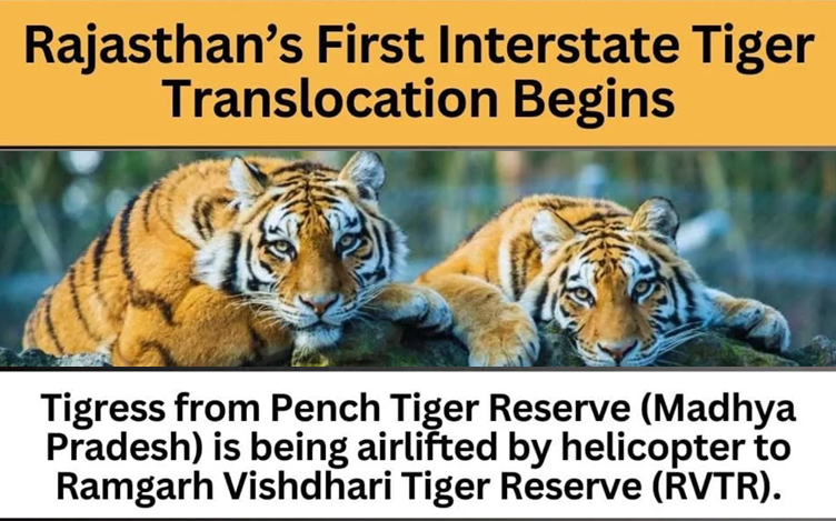 Rajasthan is carrying out its first inter-state tiger translocation by bringing a tigress (Tigress PN-224) from Pench Tiger Reserve in Madhya Pradesh.