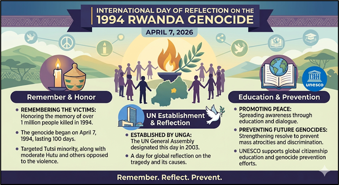 - The day was established by the United Nations General Assembly (UNGA) in 2003 to remember the victims of the 1994 genocide in Rwanda.