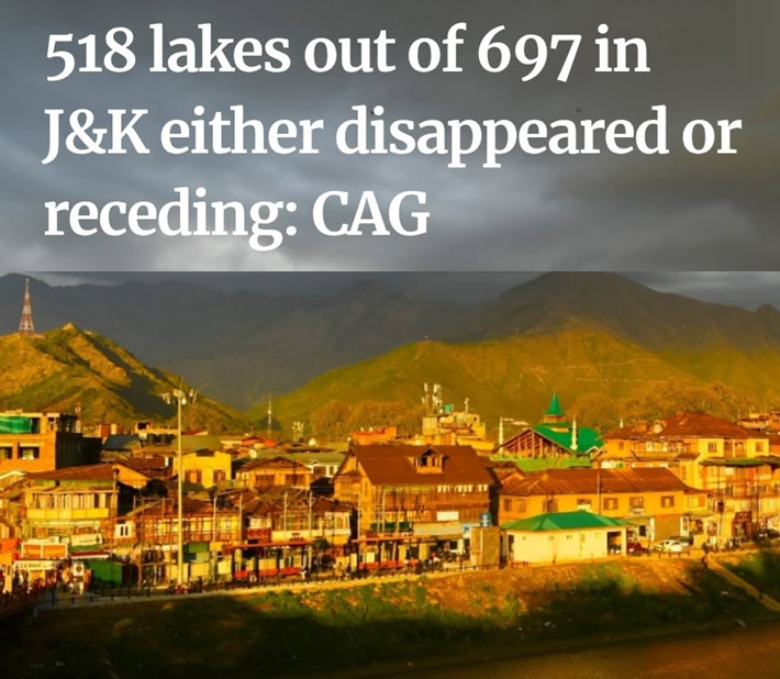 - A report by the Comptroller and Auditor General of India (CAG) highlights large-scale loss of lakes in Jammu and Kashmir.