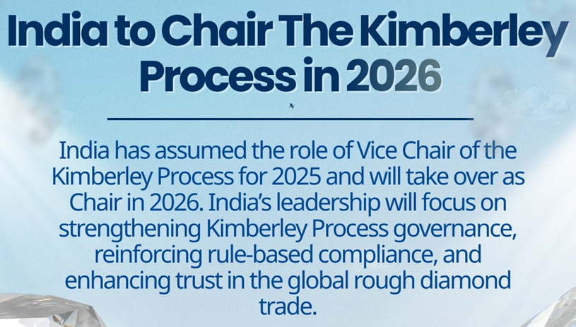 - India will assume the Chairpersonship of the Kimberley Process from 1st January 2026.