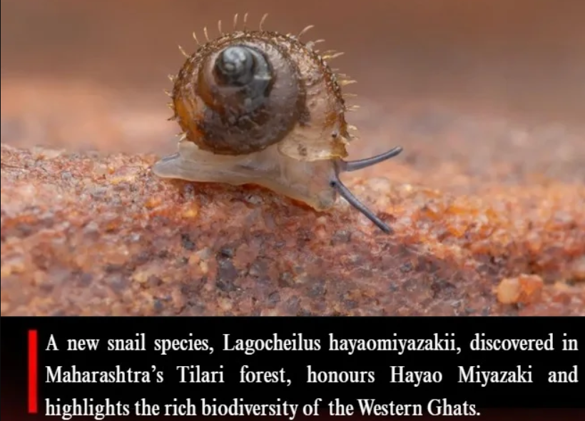 - A new species of hairy snail named Lagocheilus hayaomiyazakii found in the semi-evergreen Tilari forest of Kolhapur district, Maharashtra.