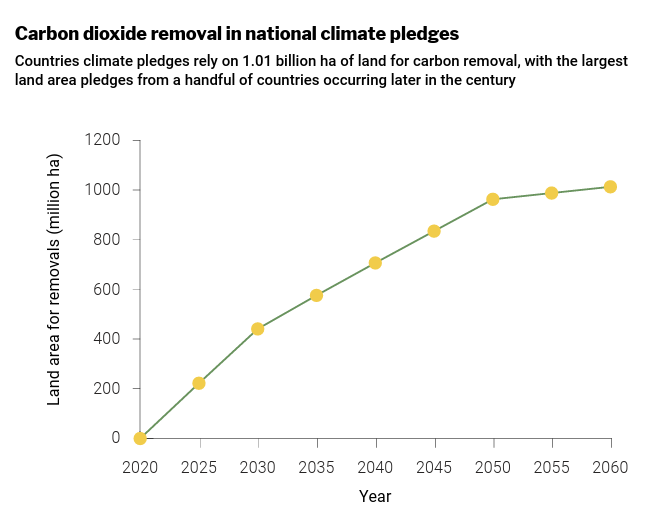 Current global government climate pledges plan to use approximately 1.01 billion hectares of land for Land-Based Carbon Removal (LBCR).