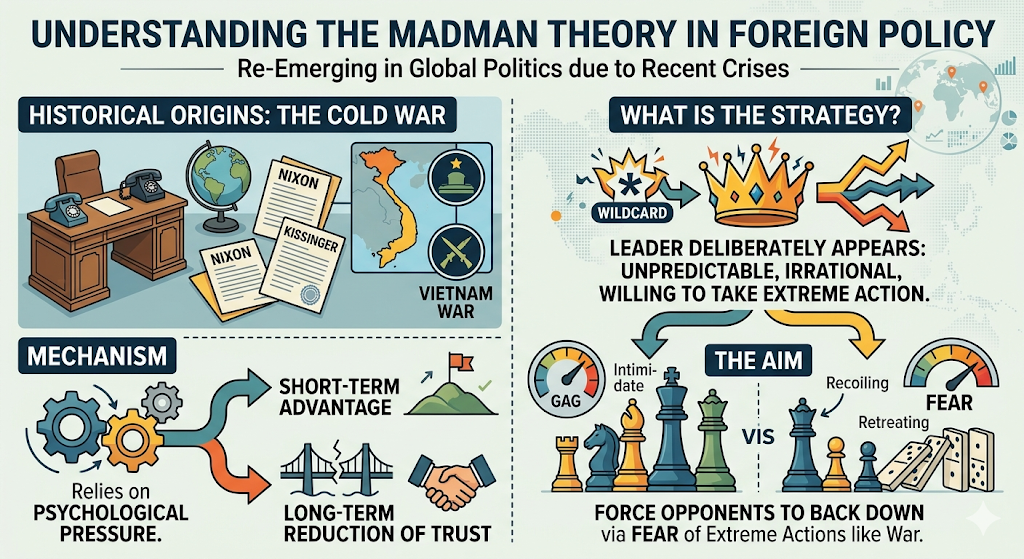 - Madman Theory is being discussed again in global politics due to recent international crises.