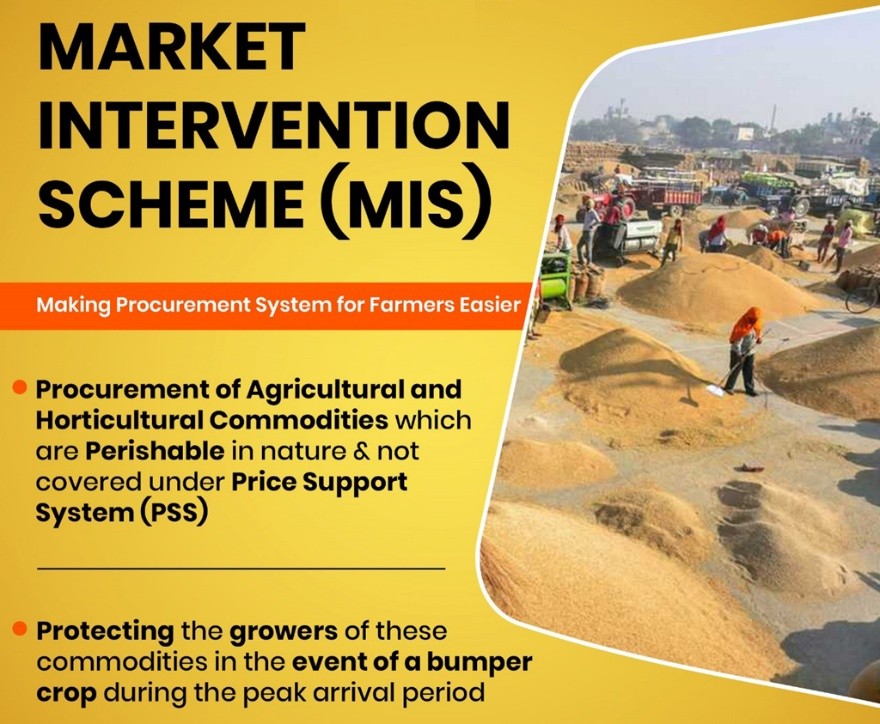 - The scheme aims to support farmers when market prices fall due to excess supply or other factors.