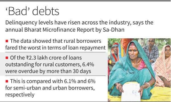 - Rural borrowers took loans worth ₹2.3 lakh crore, with 6.4% overdue beyond 30 days.
