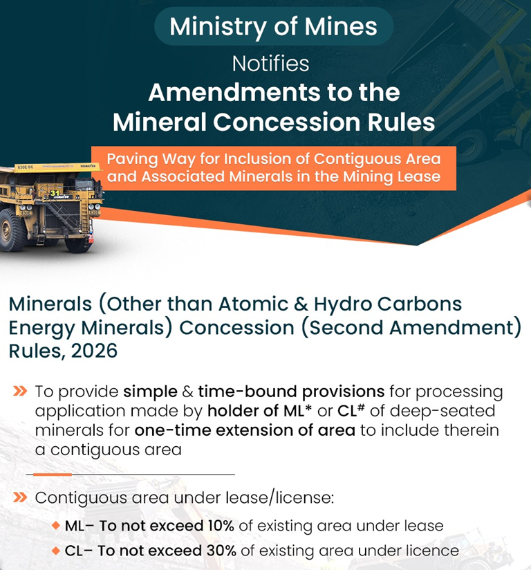 The Ministry of Mines notified amendments to the Mineral Concession Rules to simplify mining lease provisions.