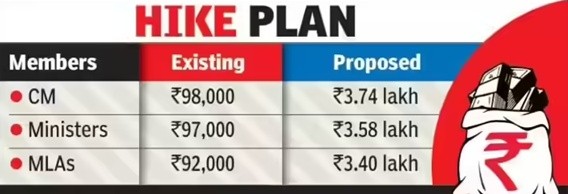 - Under the revised structure, an MLA will receive ₹3.45 lakh per month, up from ₹1.10 lakh in 2007.