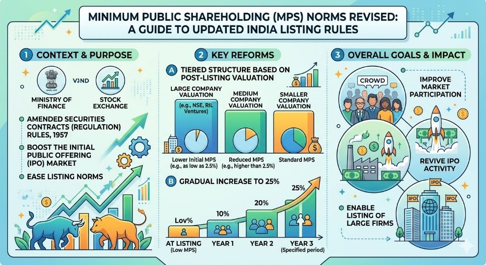 The Ministry of Finance has amended rules on Minimum Public Shareholding (MPS) to boost the Initial Public Offering (IPO) market and ease listing norms.