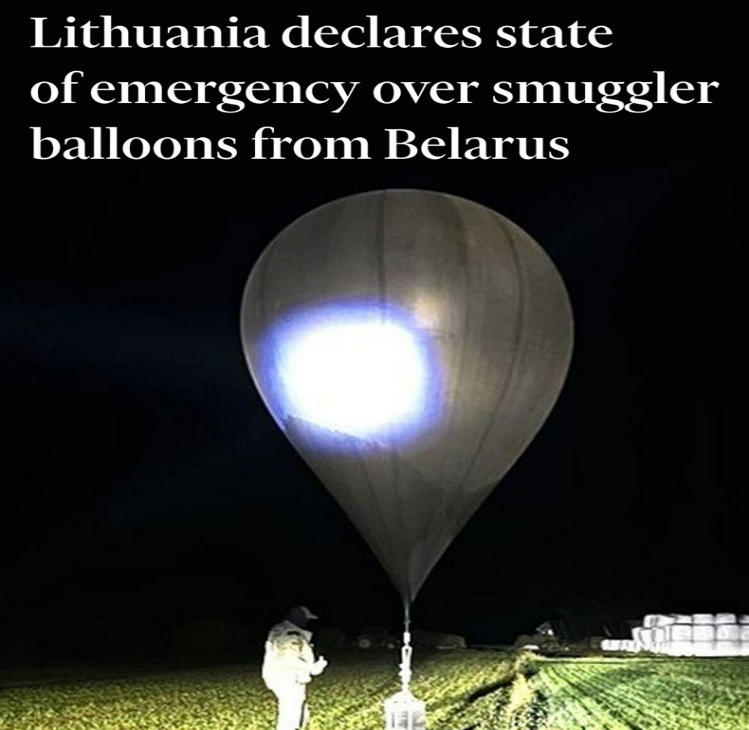 - Lithuania declared a national emergency after a series of balloon incursions from Belarus.