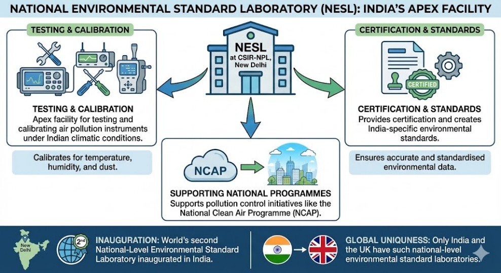 India has inaugurated the world’s second National Environmental Standard Laboratory (NESL) at CSIR – National Physical Laboratory, New Delhi.