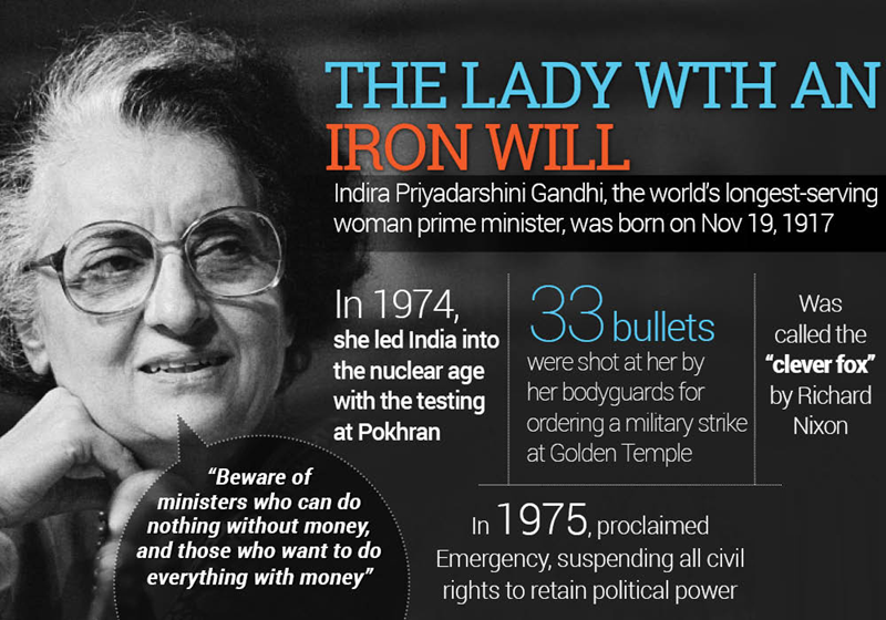 • It marks the birthday of Indira Gandhi, India’s first female Prime Minister.