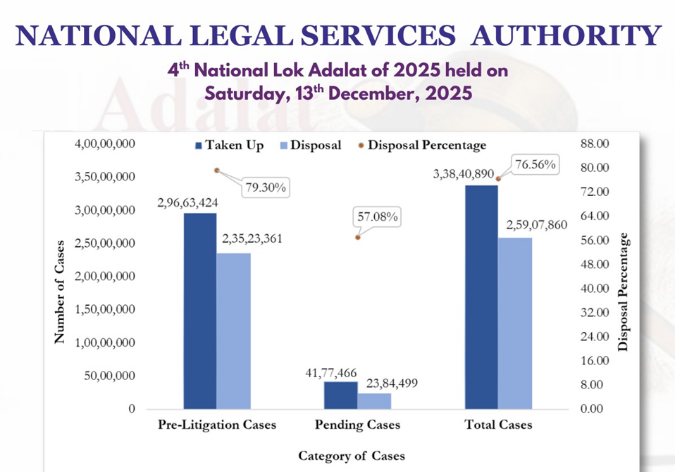- The 4th National Lok Adalat of 2025 successfully resolved 2.59 crore disputes across India.