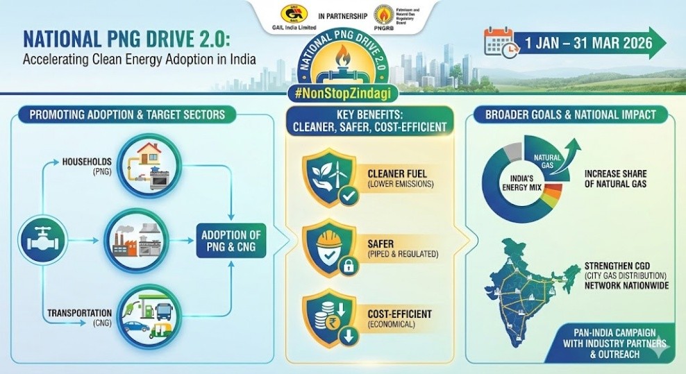 GAIL India Limited has partnered with the Petroleum and Natural Gas Regulatory Board (PNGRB) for the National PNG Drive2.0 initiative.