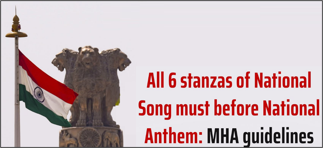 - The Ministry of Home Affairs (MHA) issued guidelines on the order of singing the National Song and National Anthem.