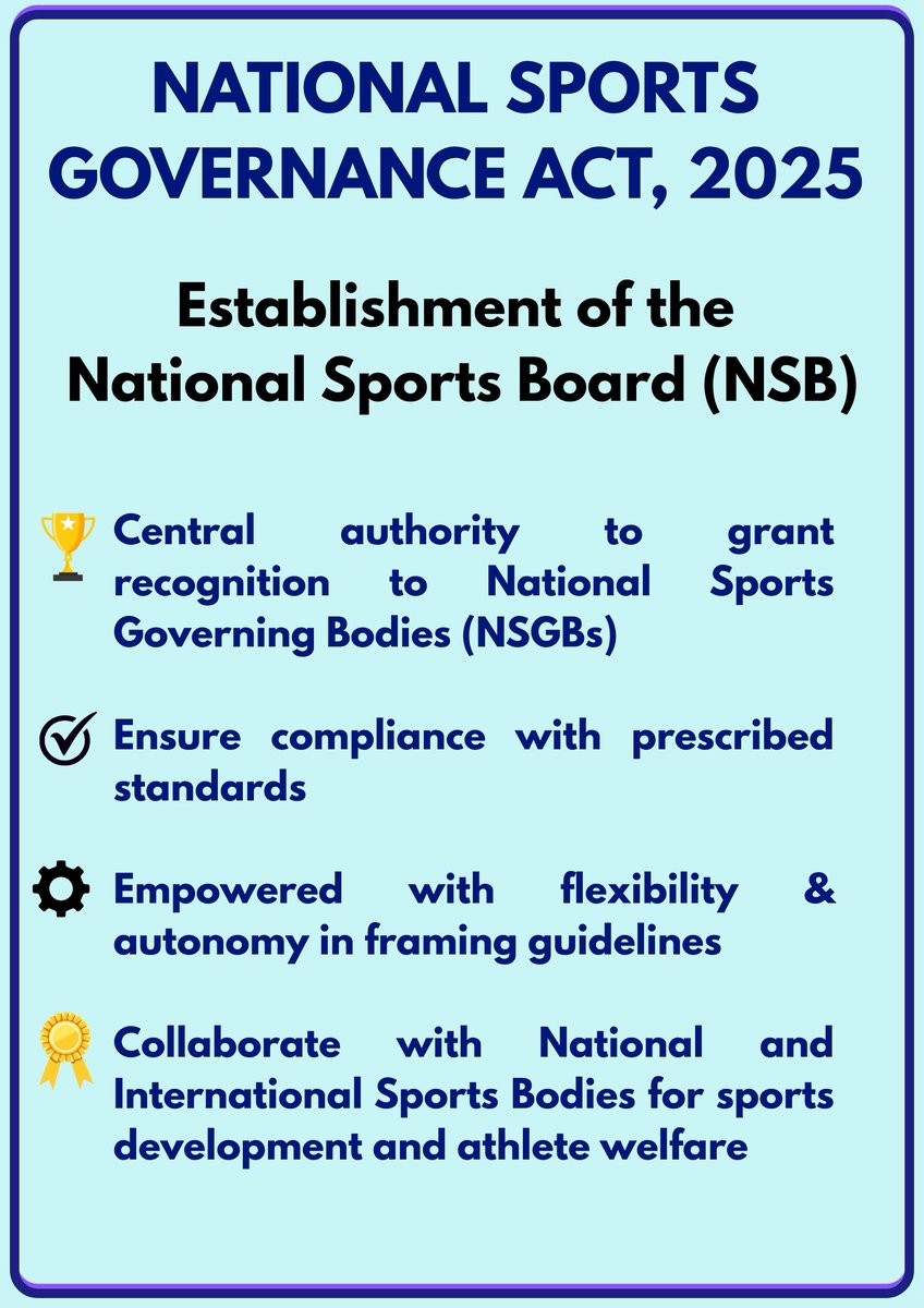 The NSB will have a chairperson and members appointed by the Central Government from among "persons of ability, integrity and standing who possess special knowledge or practical experience in the field of public administration, sports governance, sports law and other related fields.