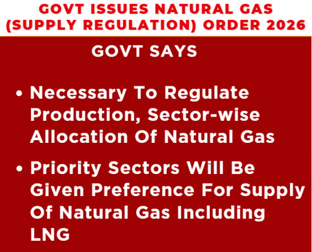 The Government of India issued the Natural Gas (Supply Regulation) Order, 2026, to prioritise natural gas allocation amid global Liquefied Natural Gas (LNG) supply concerns.