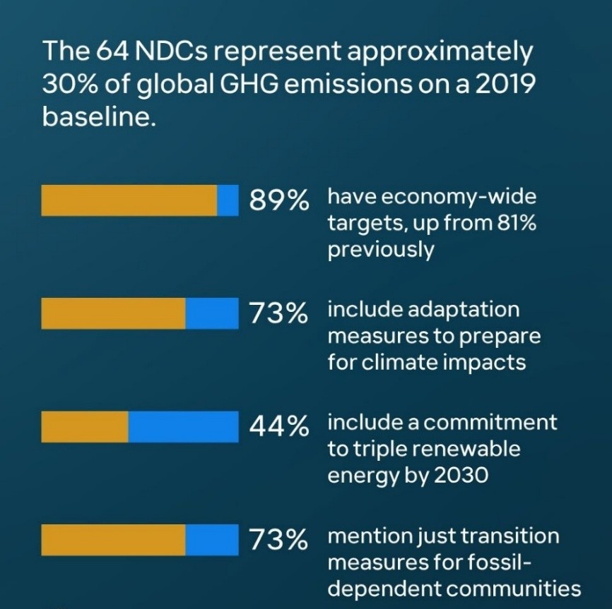 New NDCs from 64 countries, covering about 30% of global emissions, aim to reduce emissions up to 17% below 2019 levels by 2035.
