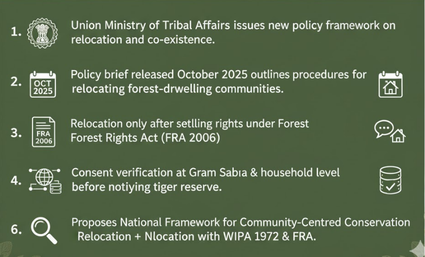 The policy brief released in October 2025 outlines procedures for relocating forest-dwelling communities from tiger reserves.