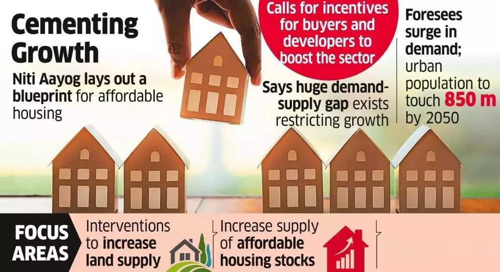 NITI Aayog has prepared the report “A Comprehensive Framework to Promote Affordable Housing” with the Ministry of Housing and Urban Affairs.