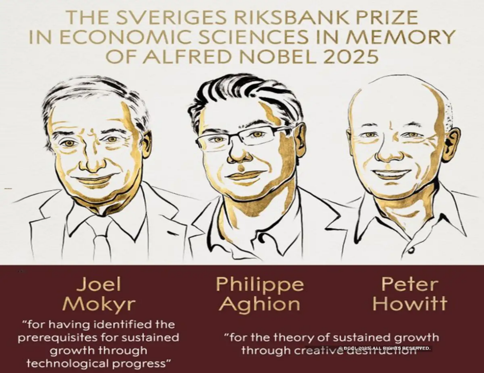 - The Nobel Memorial Prize in Economic Sciences for 2025 was awarded to Joel Mokyr, Philippe Aghion and Peter Howitt.