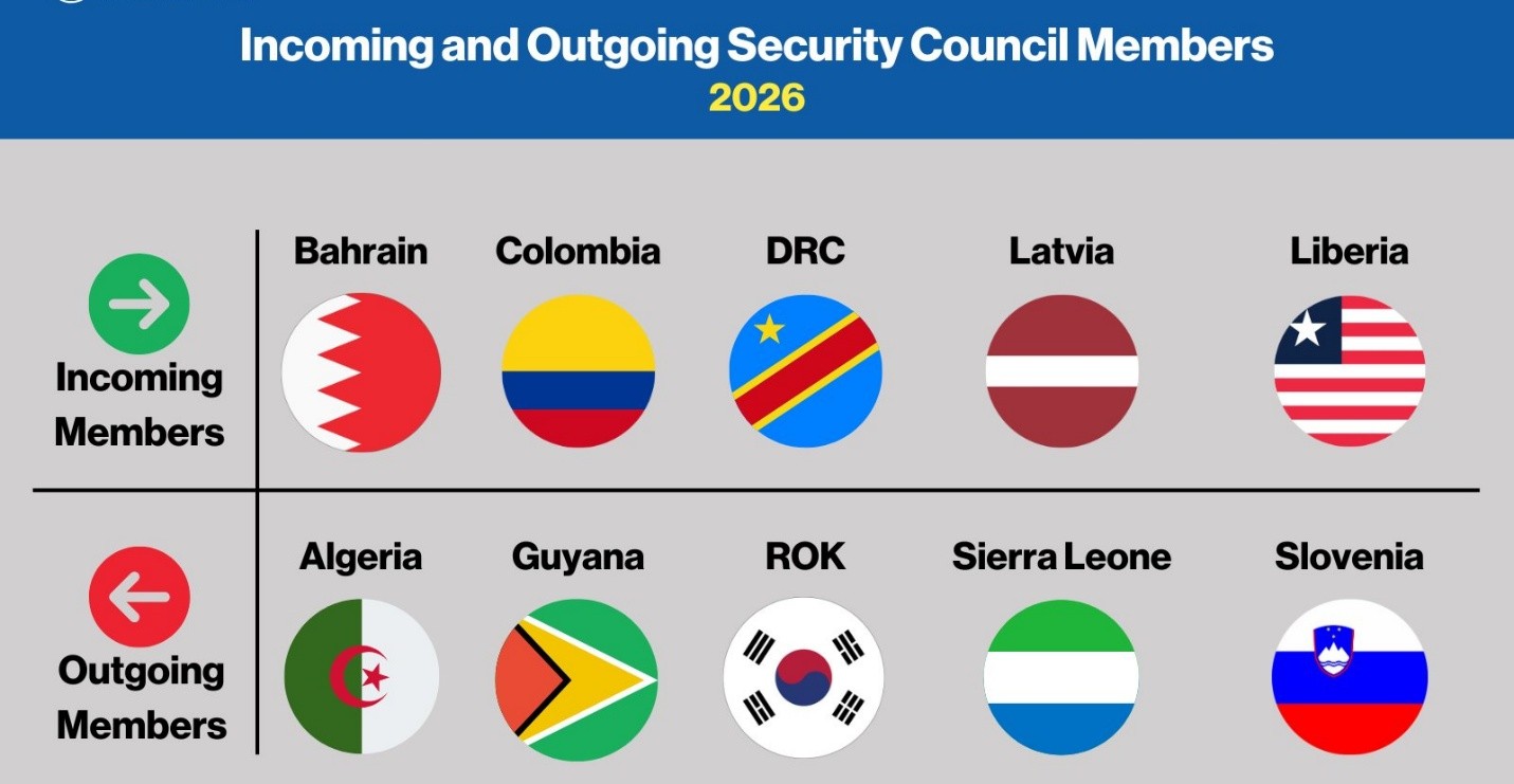- Bahrain, Colombia, the Democratic Republic of the Congo, Latvia and Liberia have begun two-year terms as non-permanent members.