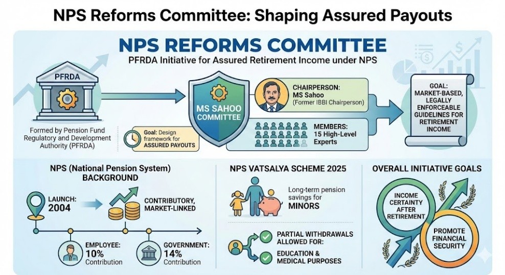 • The Pension Fund Regulatory and Development Authority (PFRDA) has formed a high-level Committee to design a framework for assured payouts under the National Pension System (NPS).