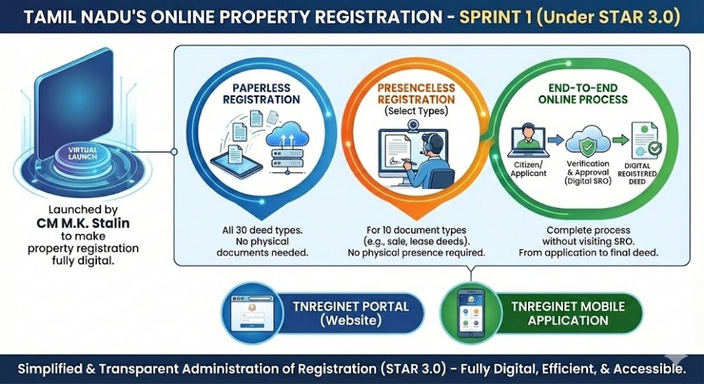 - Tamil Nadu Chief Minister M.K. Stalin launched Sprint 1 to make the property registration fully digital.