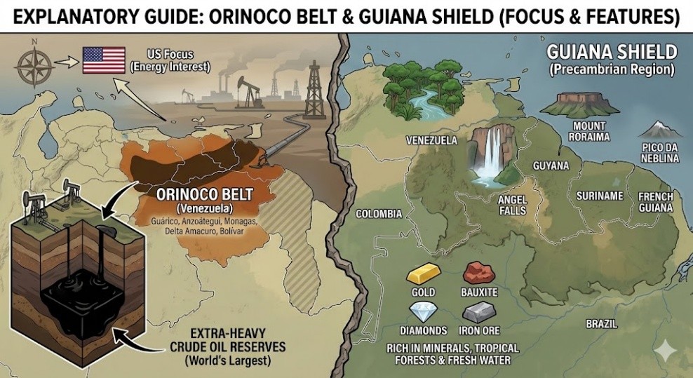 - The USA has focused on Venezuela’s mineral-rich Orinoco Belt and Guiana Shield.