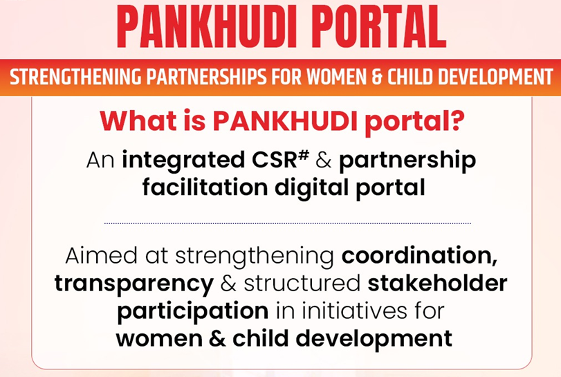 Union Minister for Women and Child Development launched the PANKHUDI portal to improve ease of living for women and children in India.